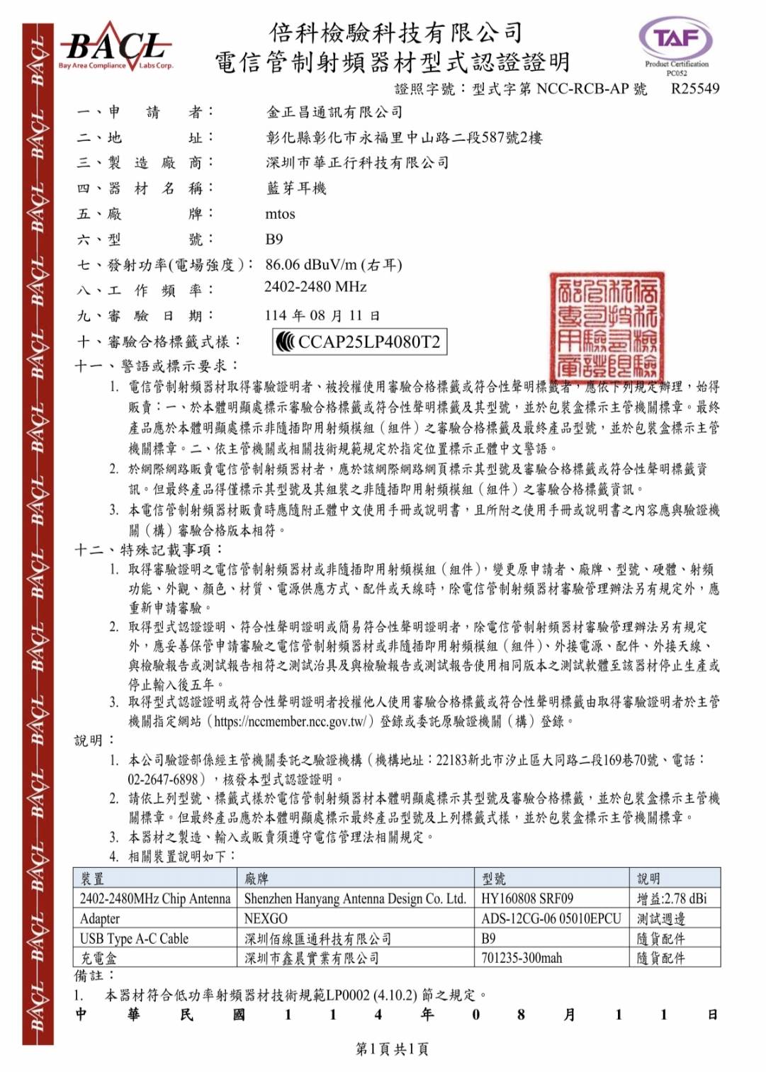 藍芽版本:5.4